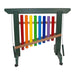 The PlayMore Rainbow Chime Unit has eight colorful chimes, in the F Major Diatonic scale (F, G, A, Bb, C, D, E, F). The pitches provide a professional sound quality, far superior to toy chimes. The chimes are powder coated for a durable and vibrant color finish. The colors for the first seven chimes follow the colors of a rainbow. Teach the Rainbow colors with the acronym “Roy G. Biv” which stands for Red, Orange, Yellow, Green, Blue, Indigo, Violet. The eighth chime resolves the octave and is colored red for the F note. The chimes can be played by bumping them against the striker bars or with the attached recycled plastic mallets.
